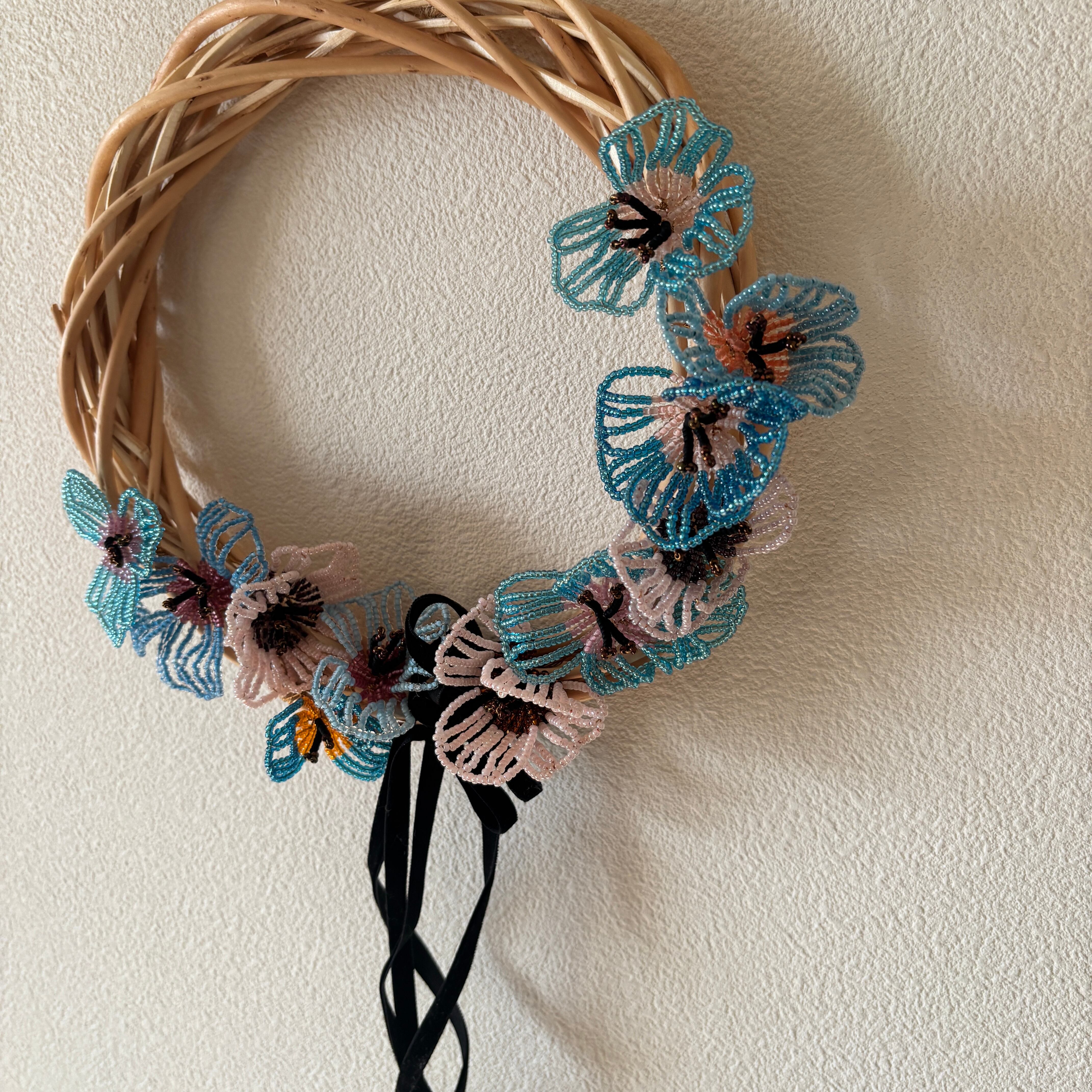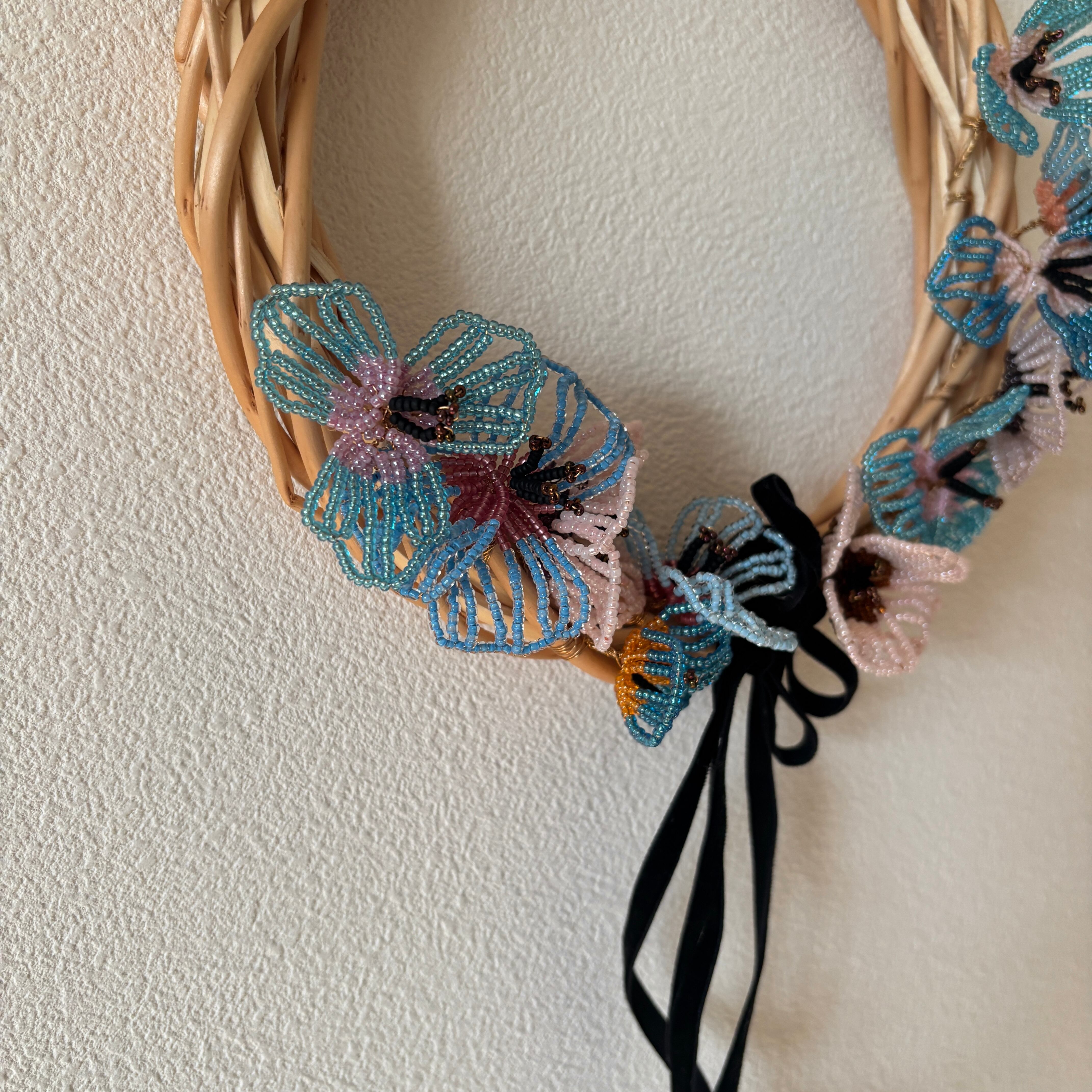 ビーズフラワーをツルのリースに