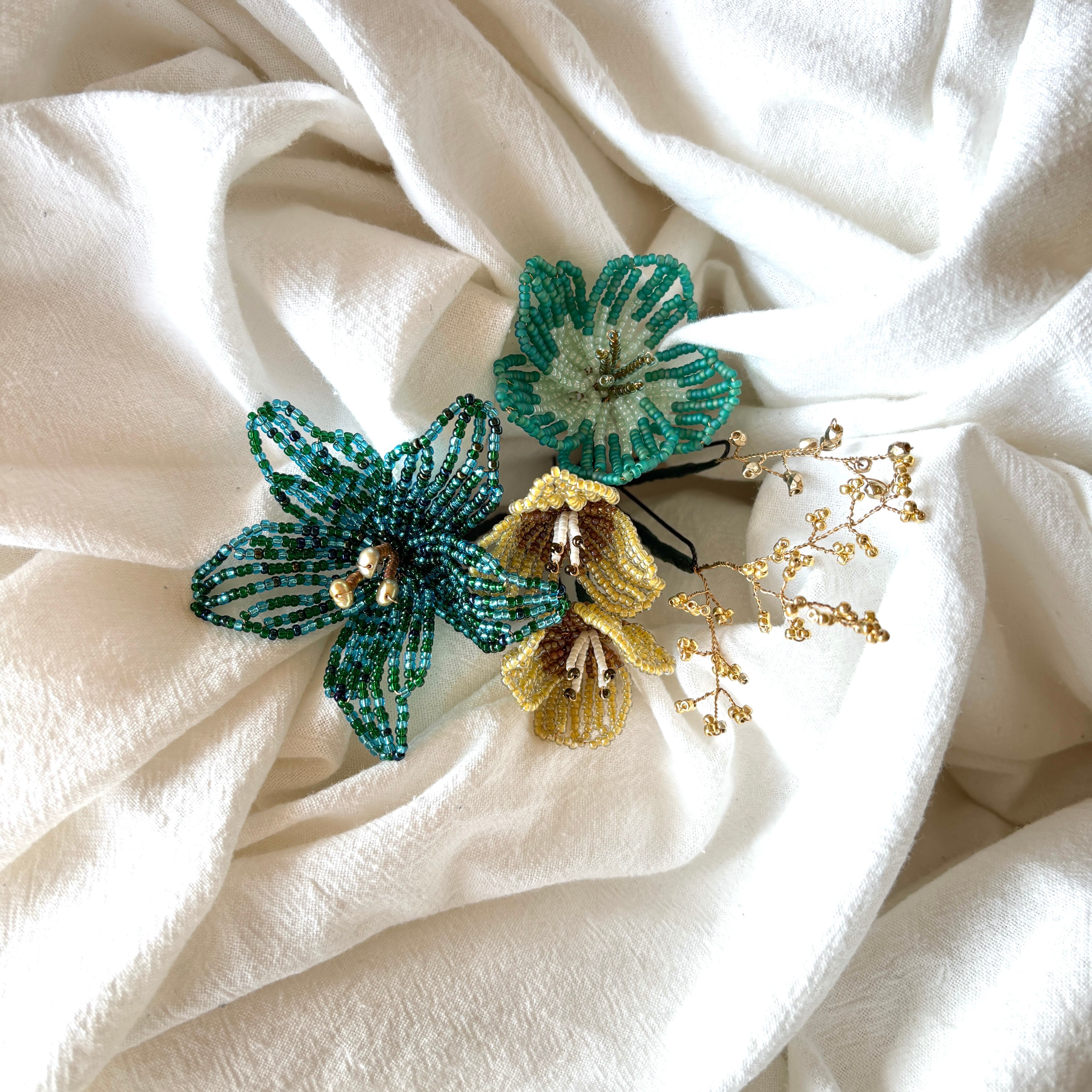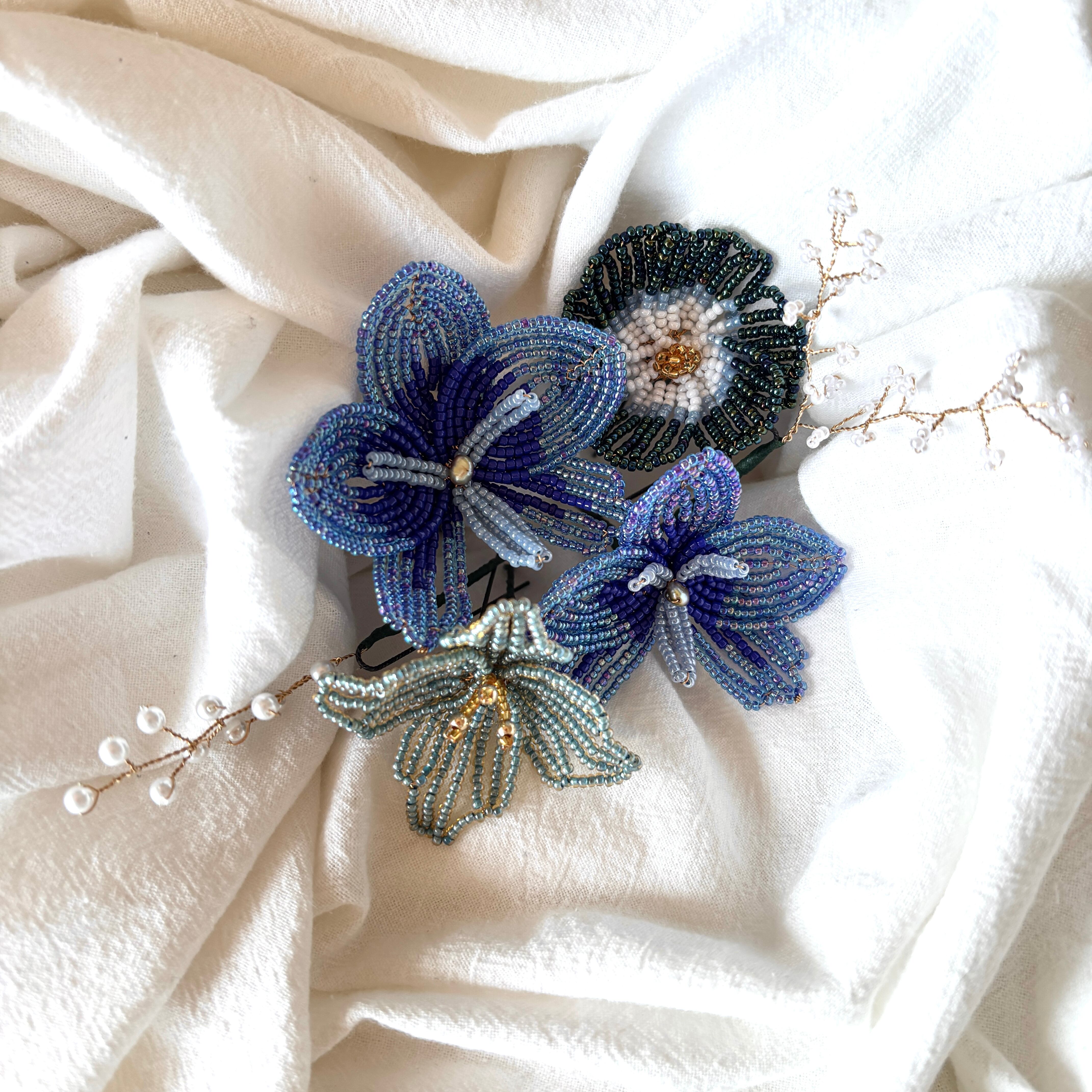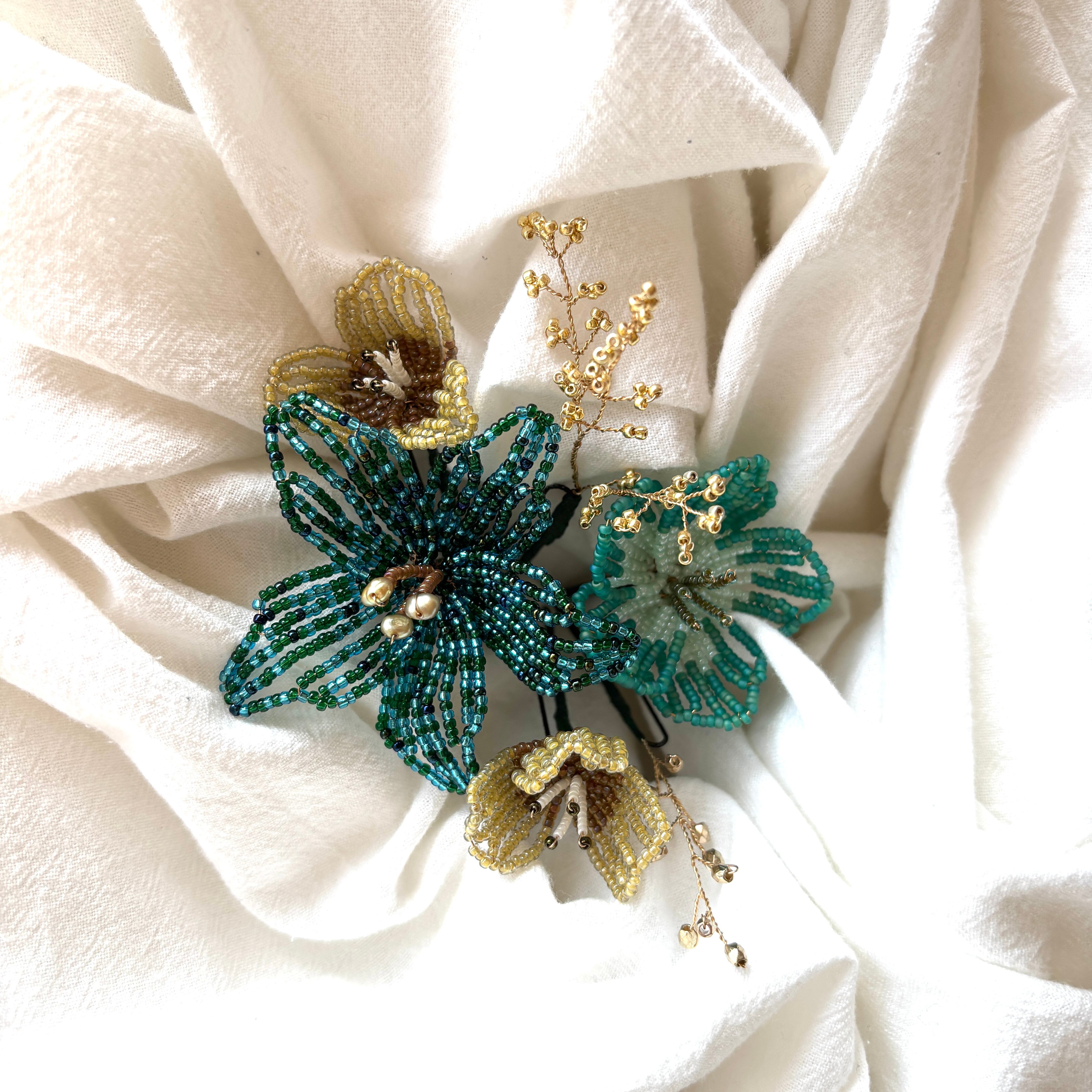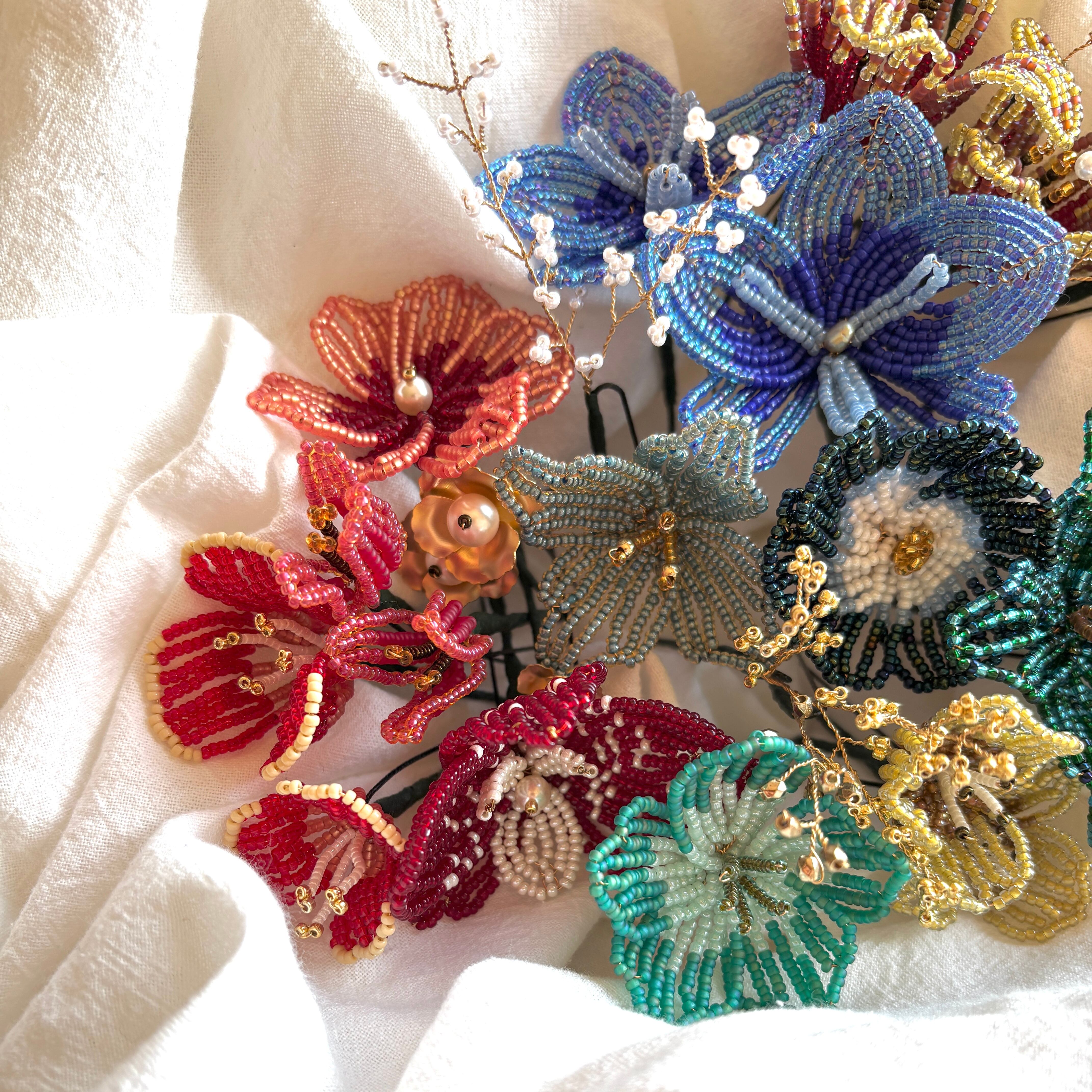 ビーズフラワーのヘッドアクセサリー。