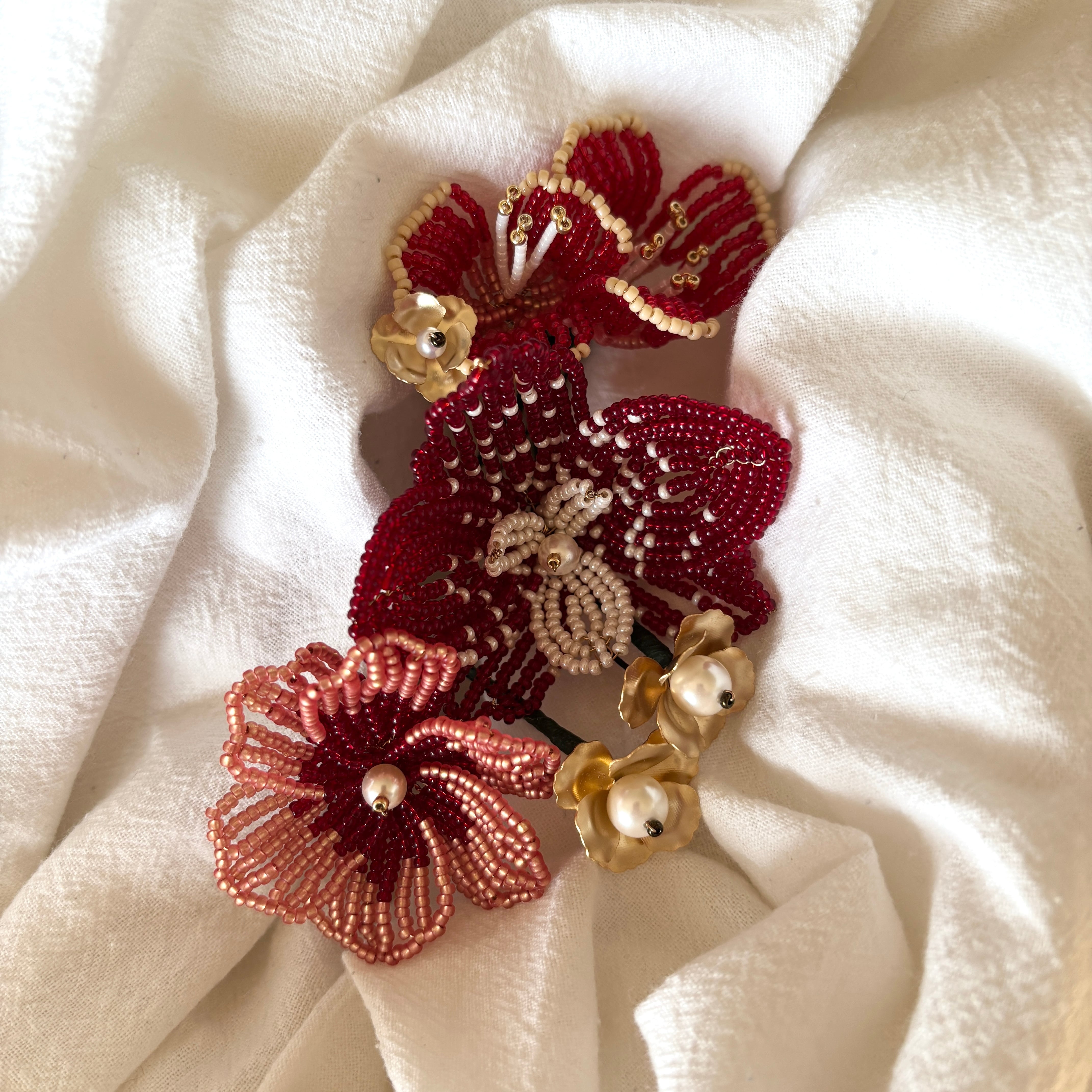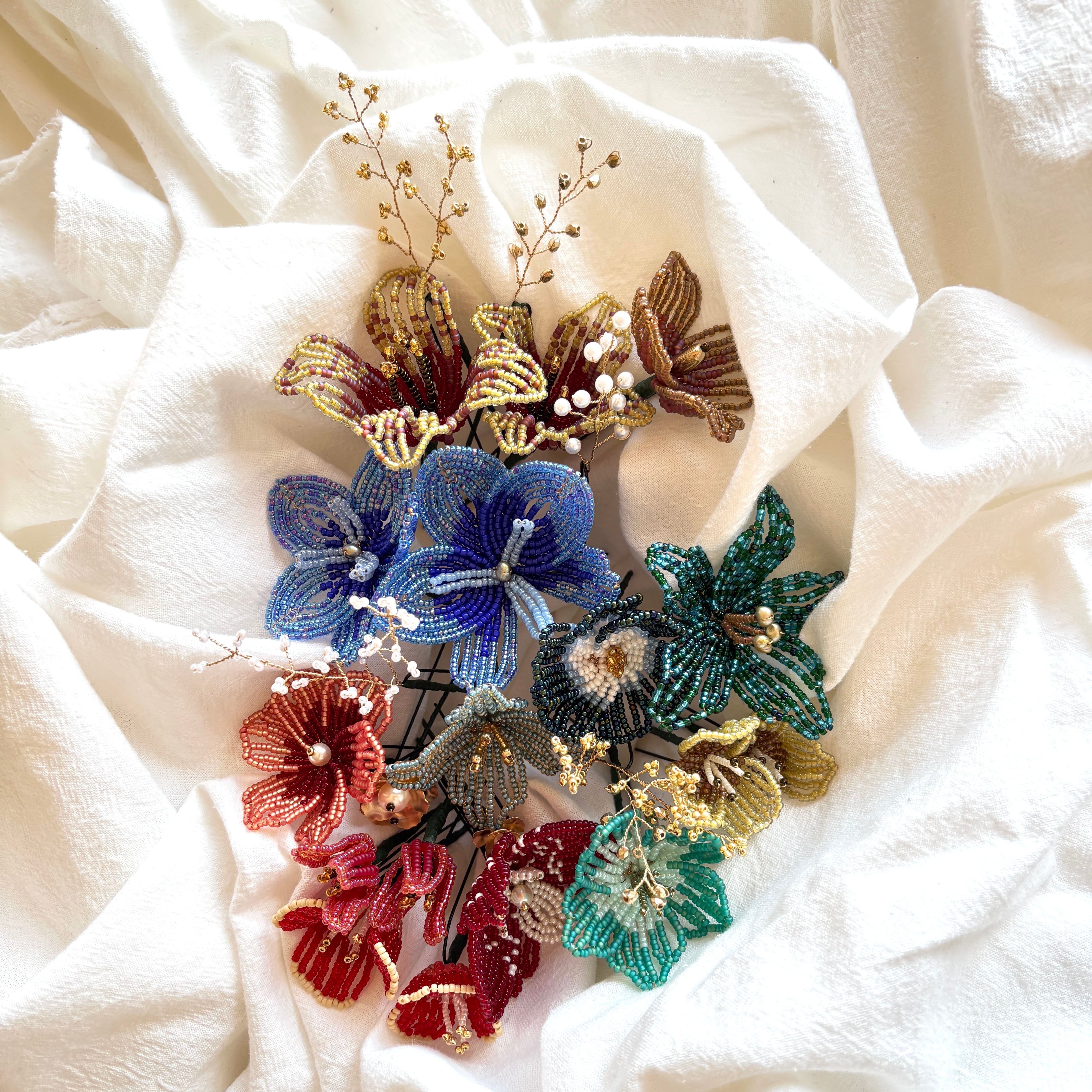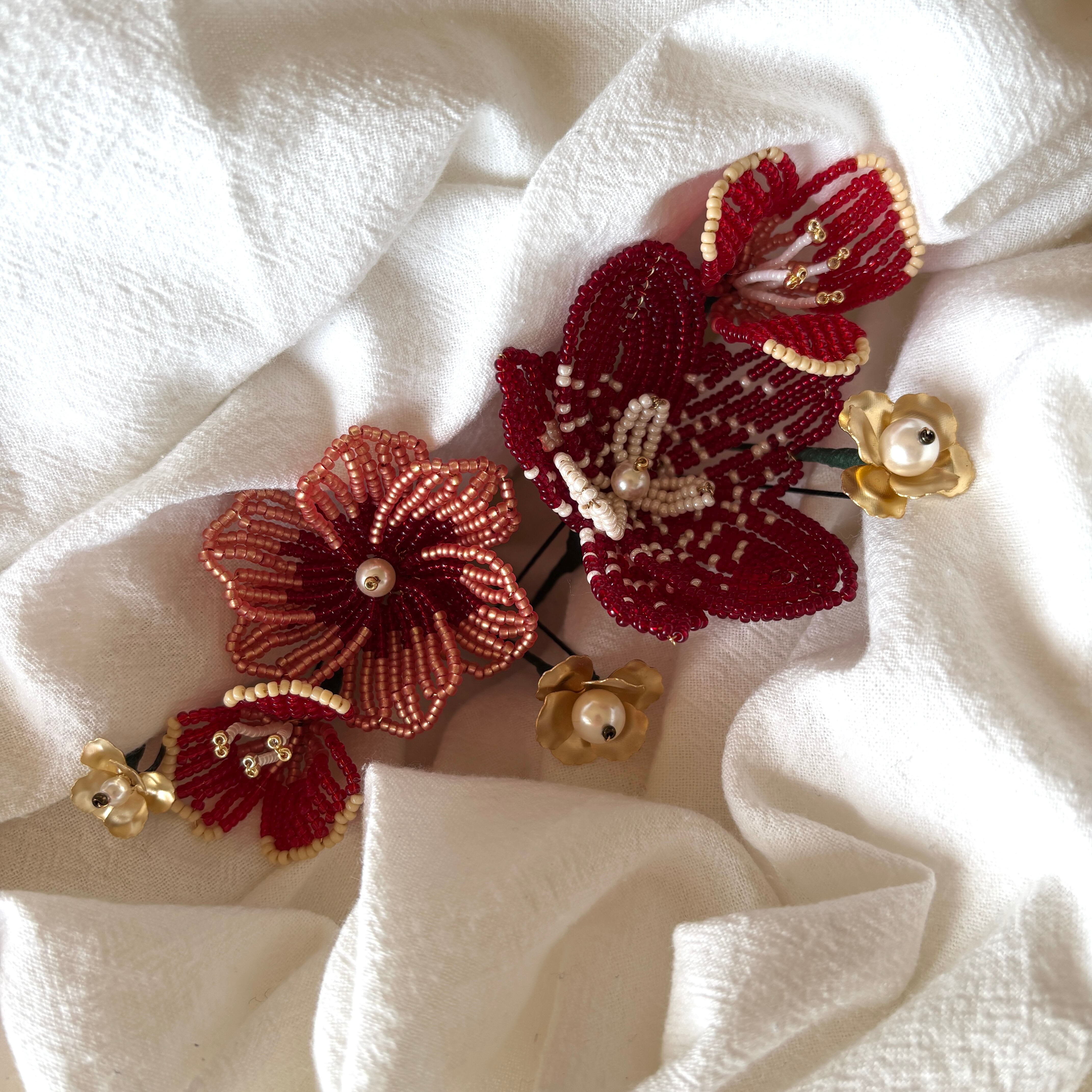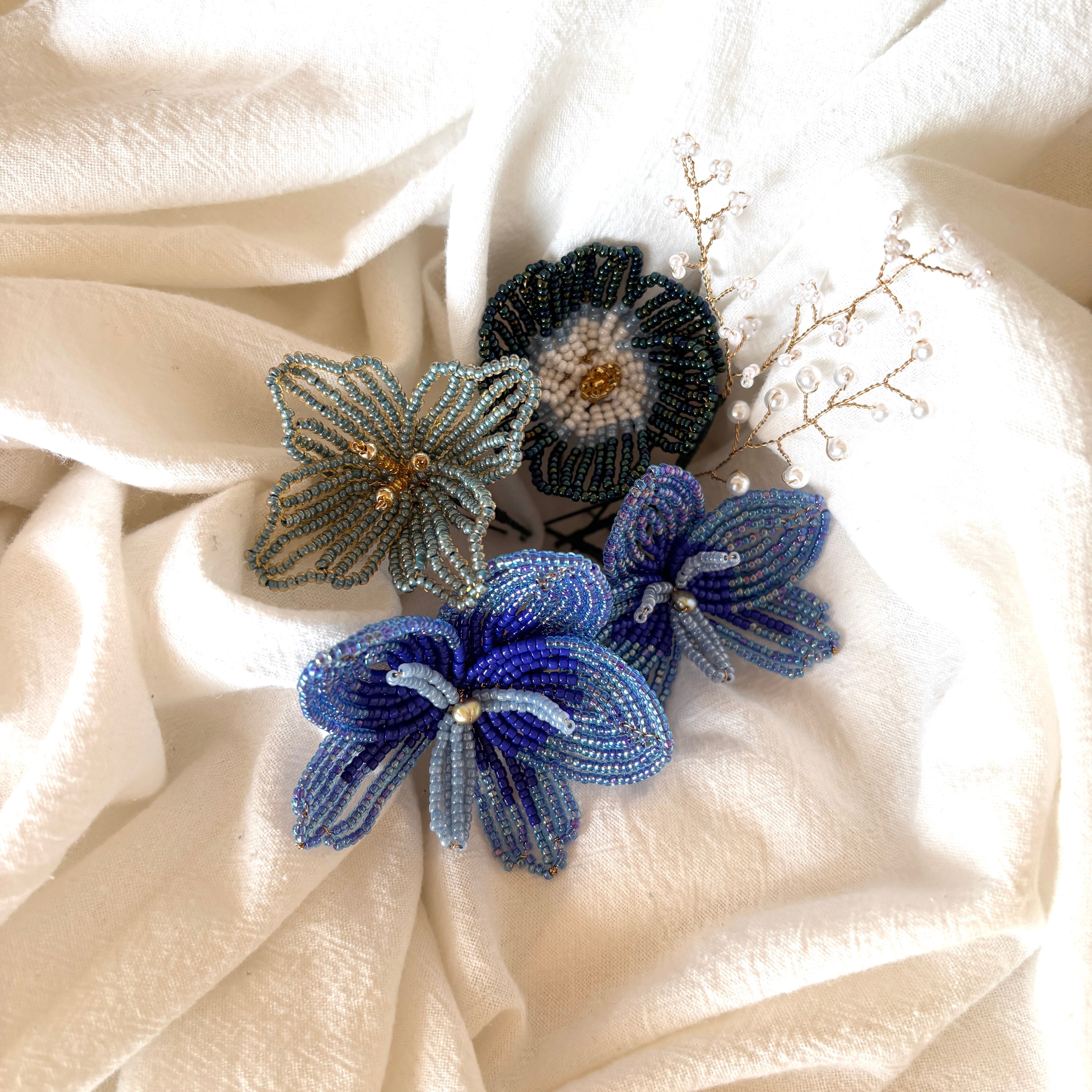 ビーズフラワーのヘッドアクセサリー。