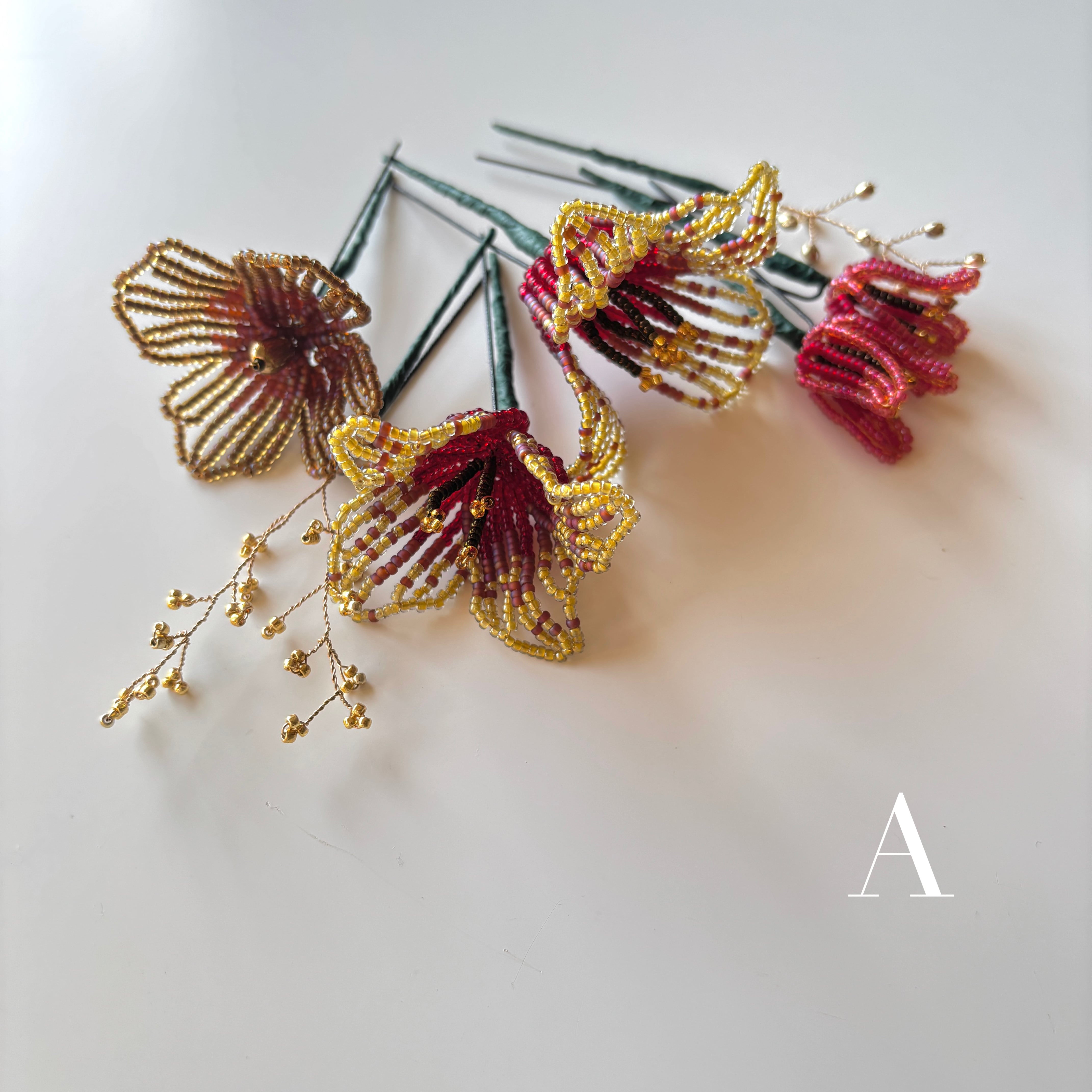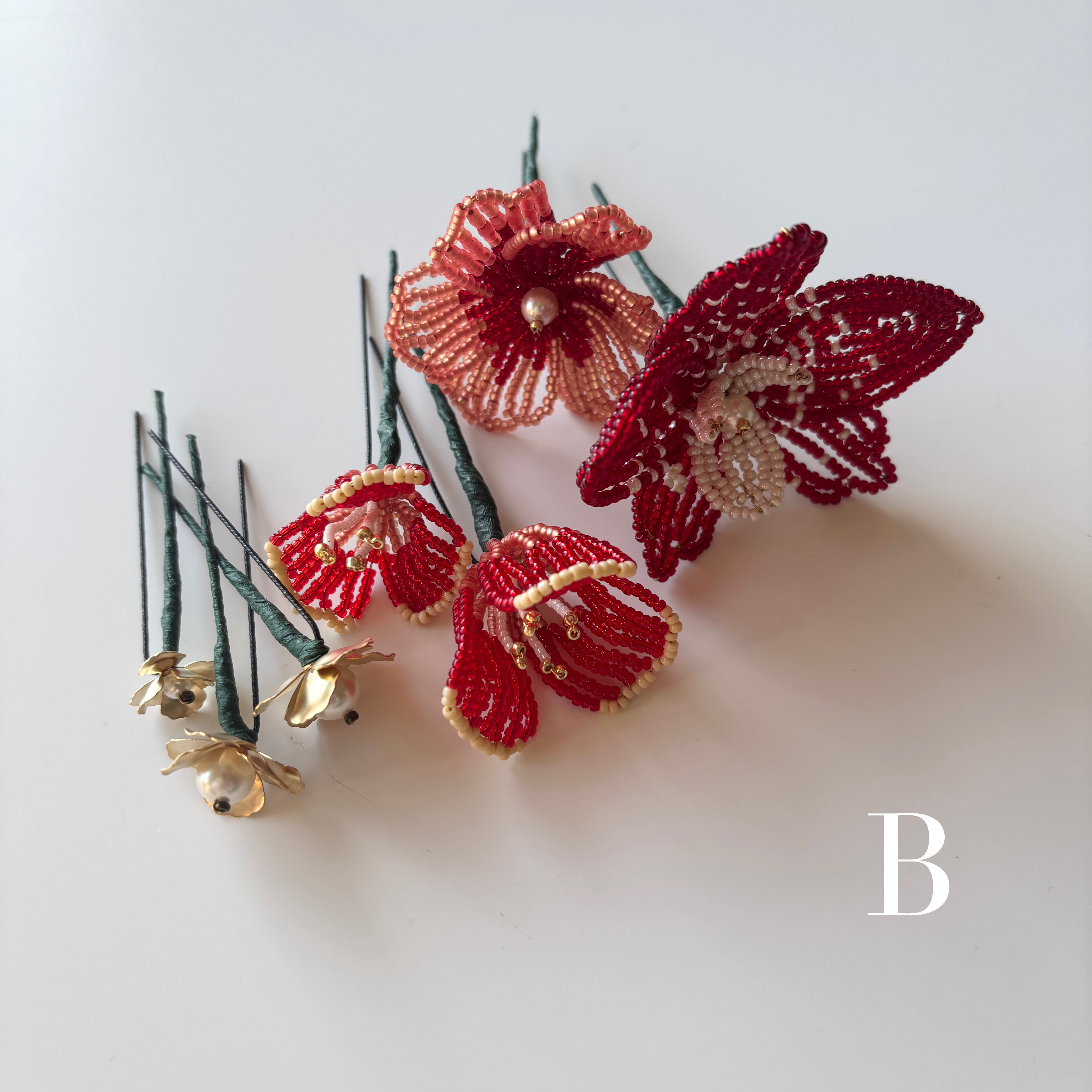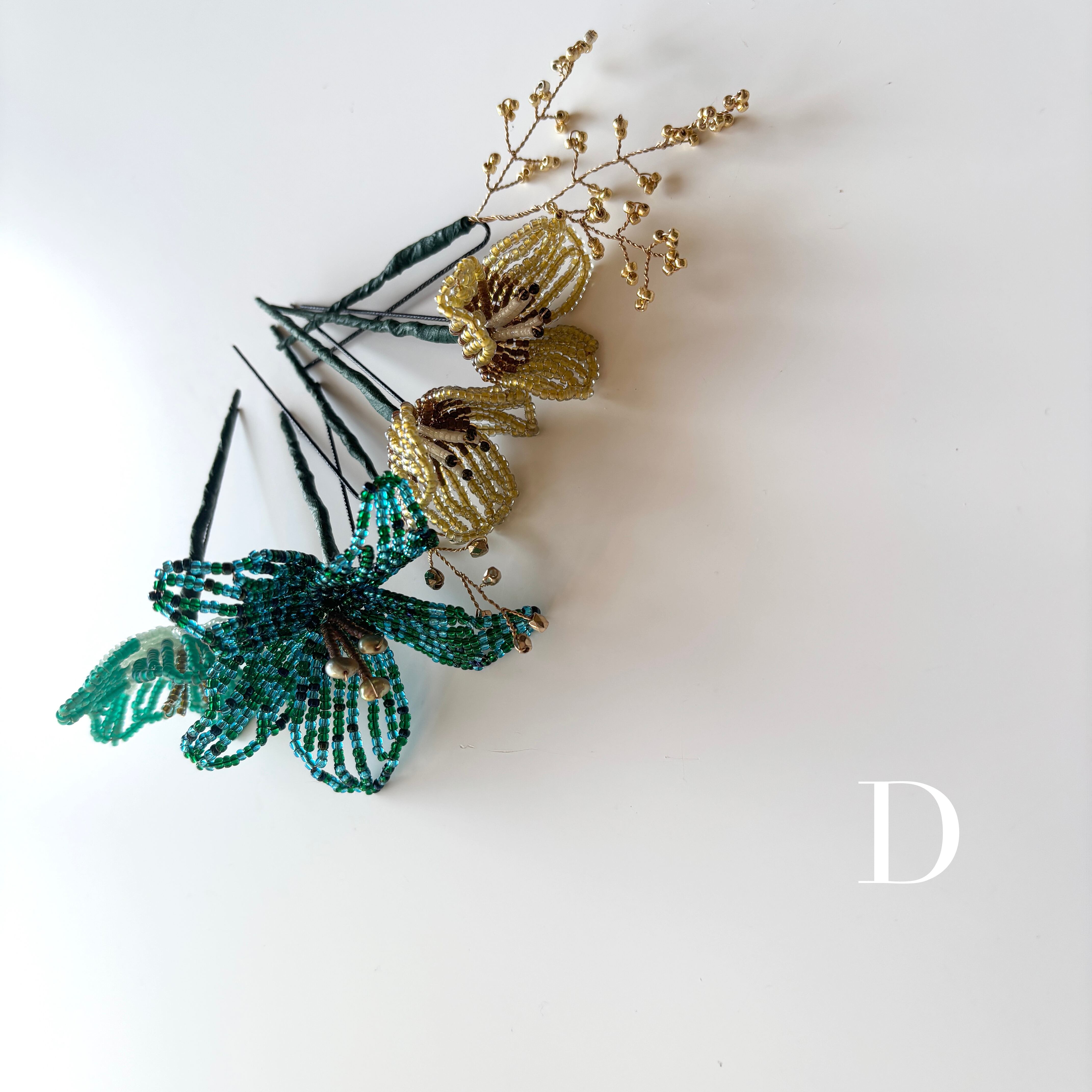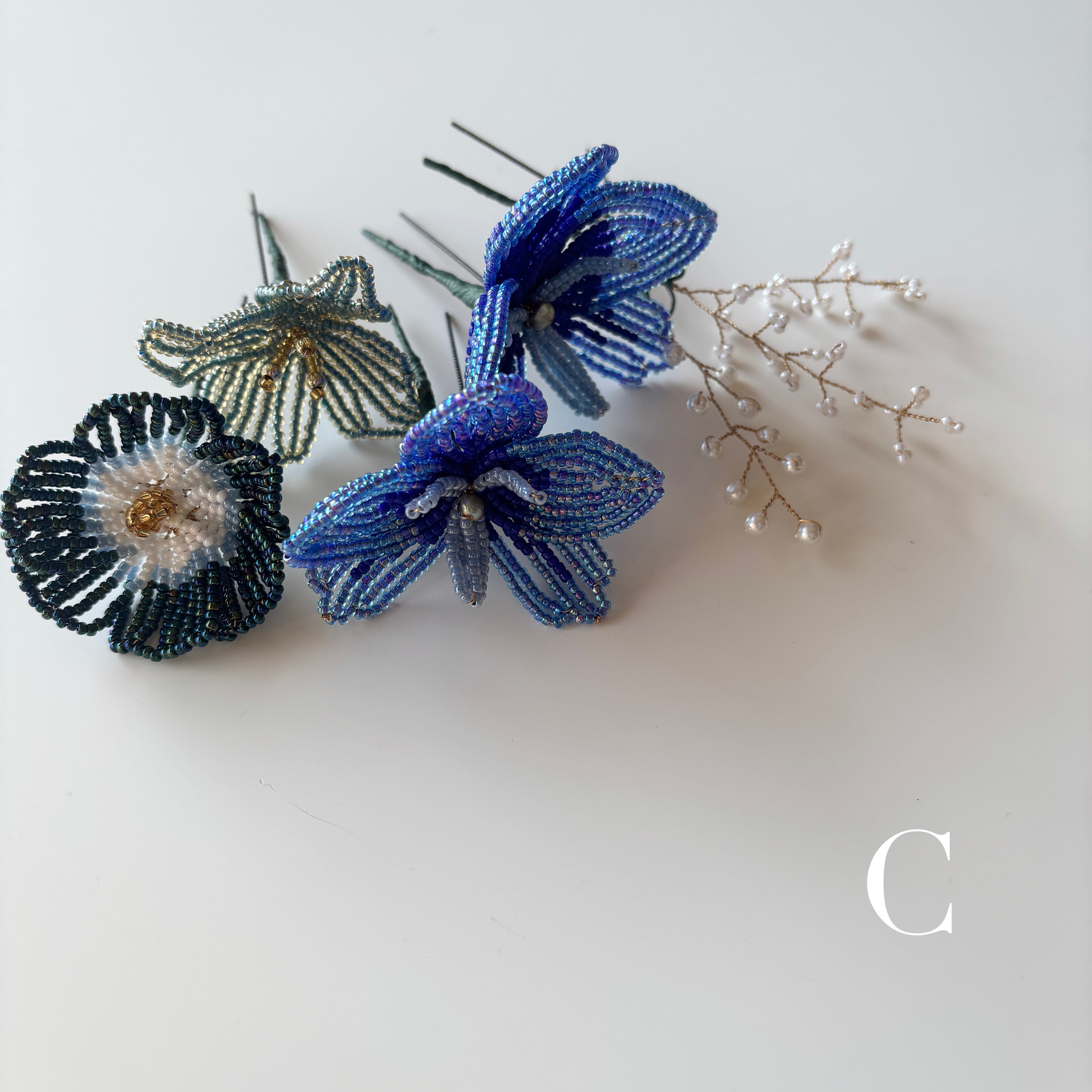 ビーズフラワーのヘッドアクセサリー。
