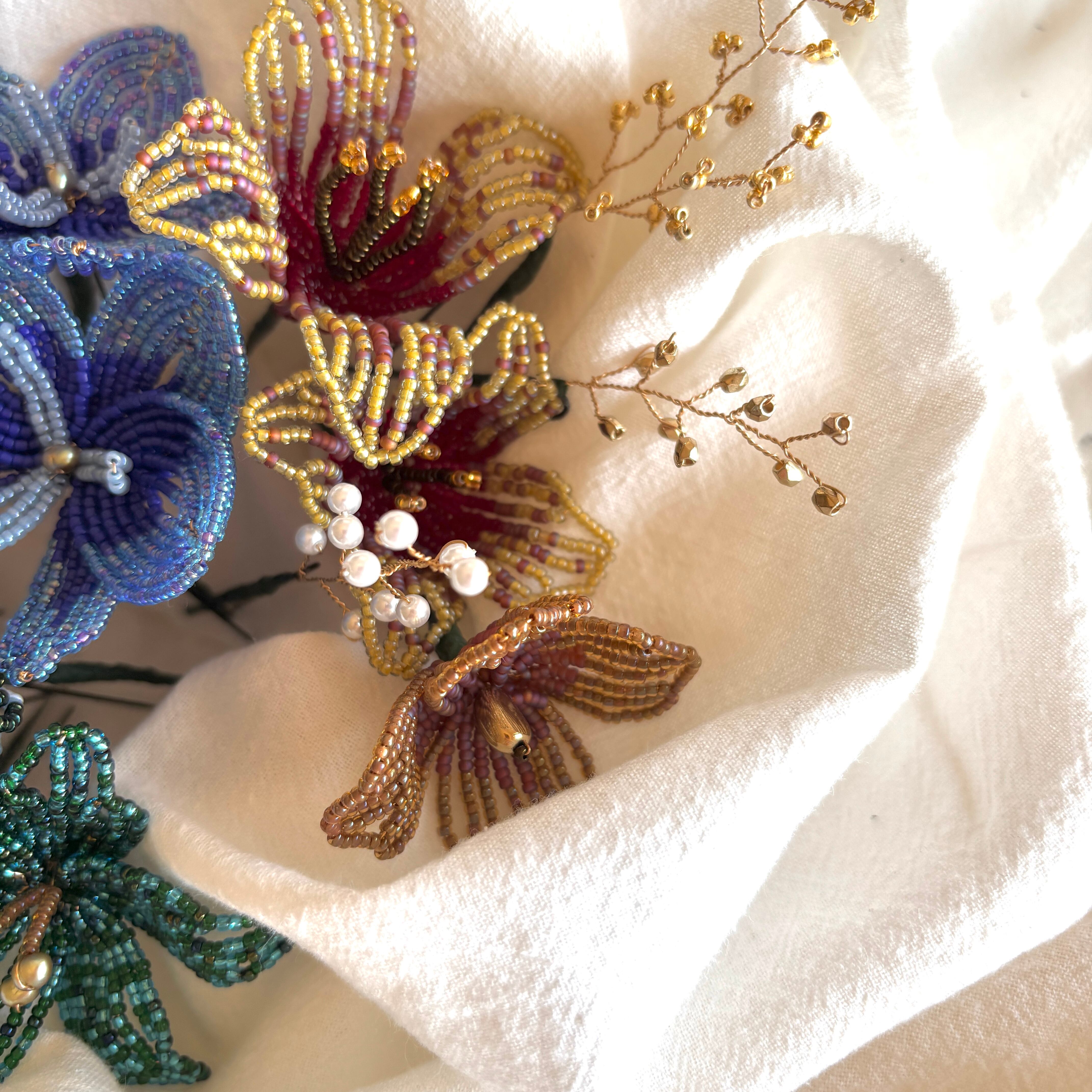 一粒一粒のビーズを丁寧に編み上げ、