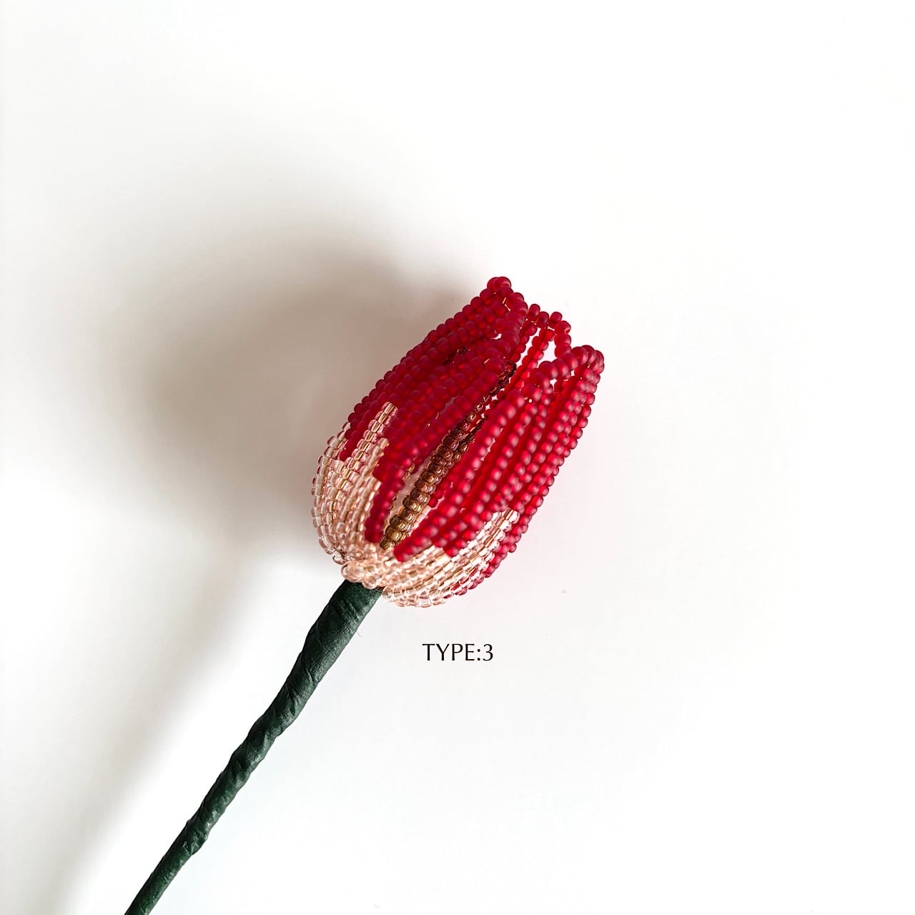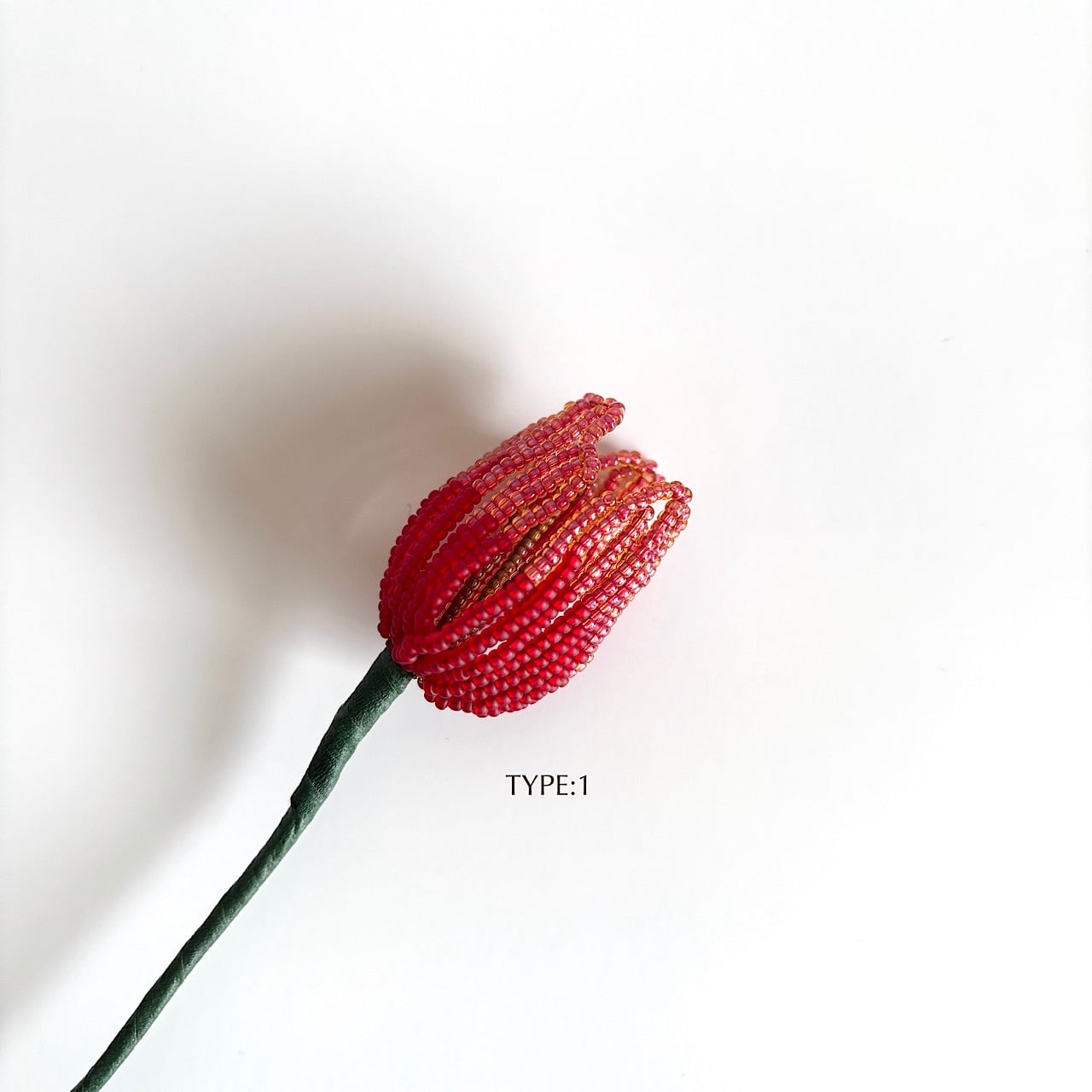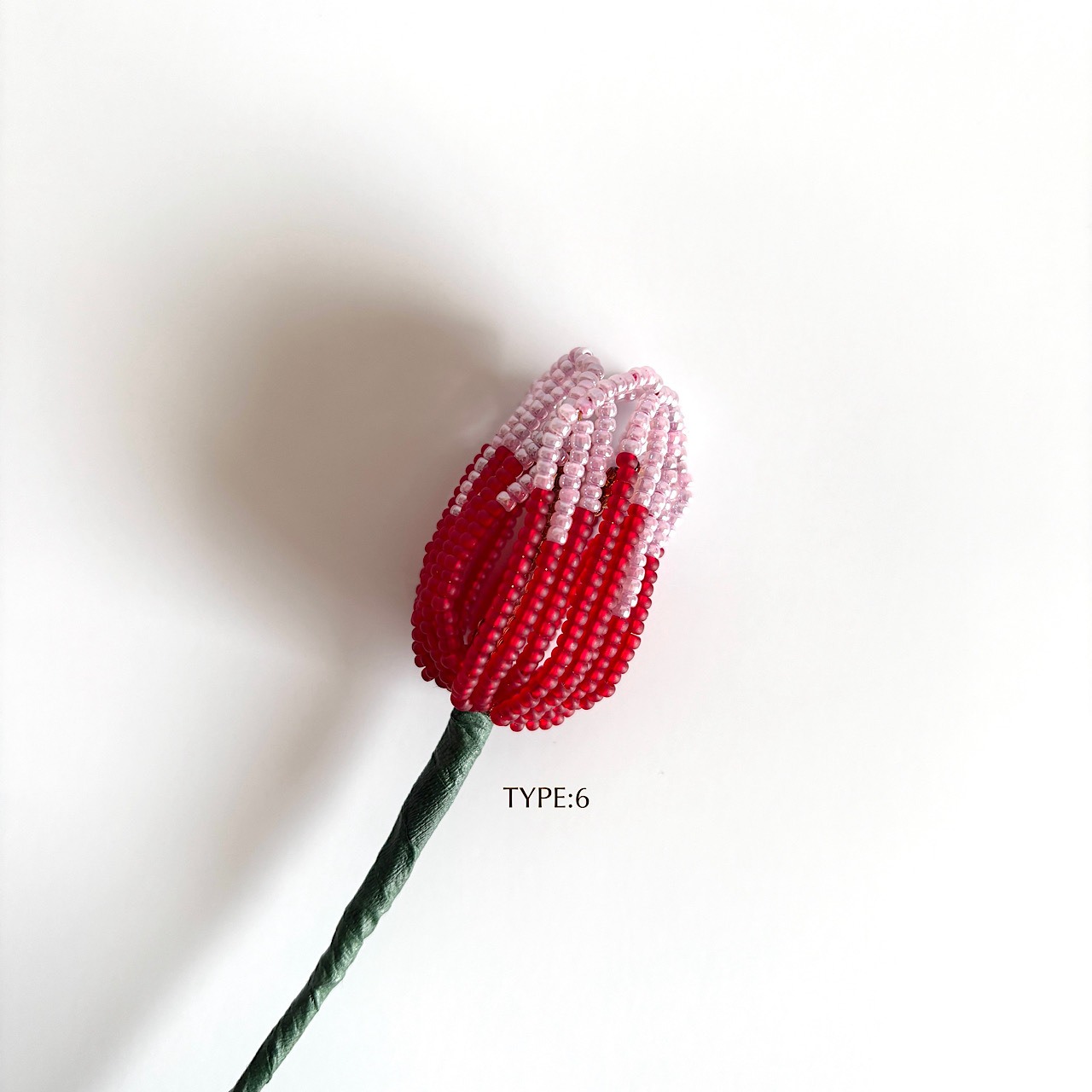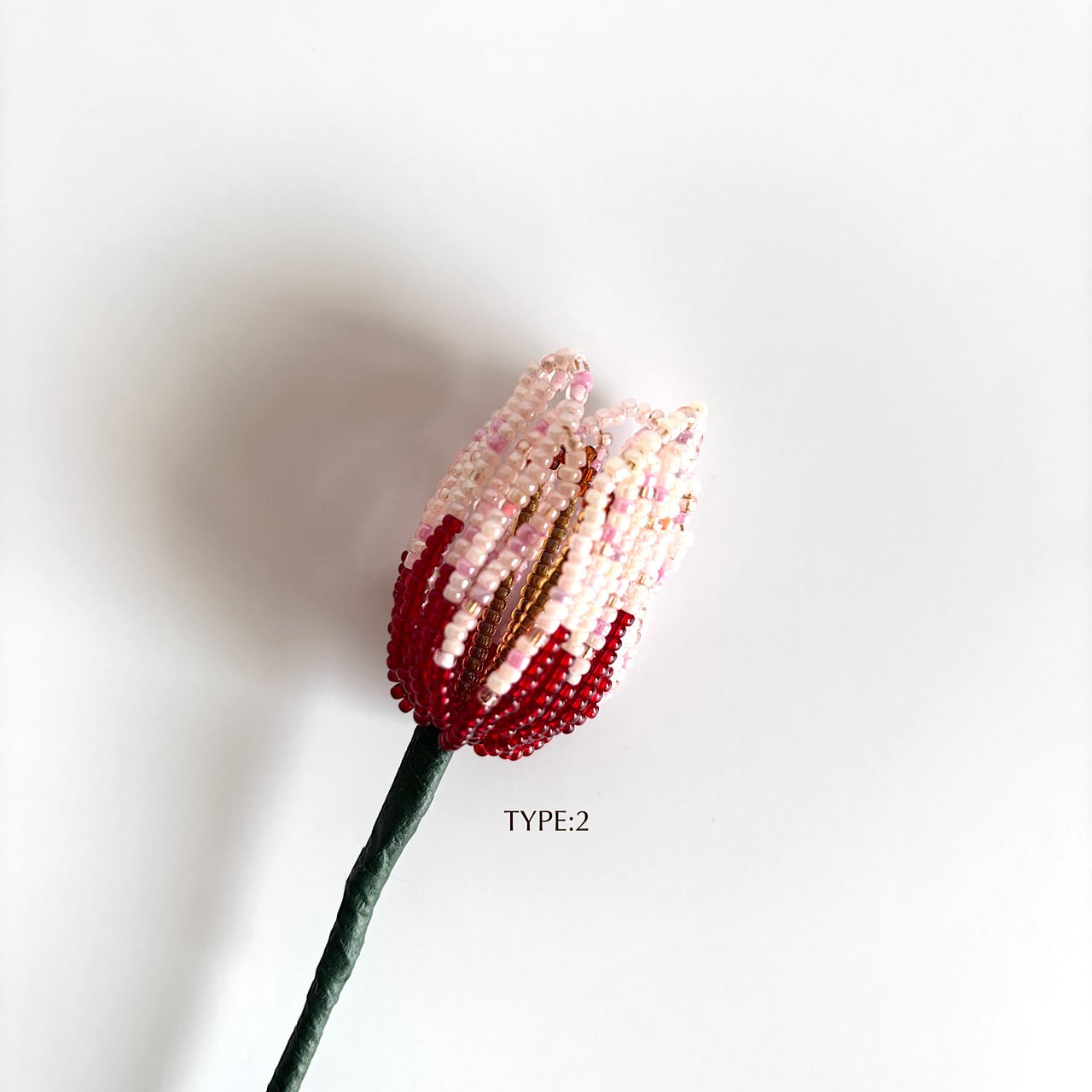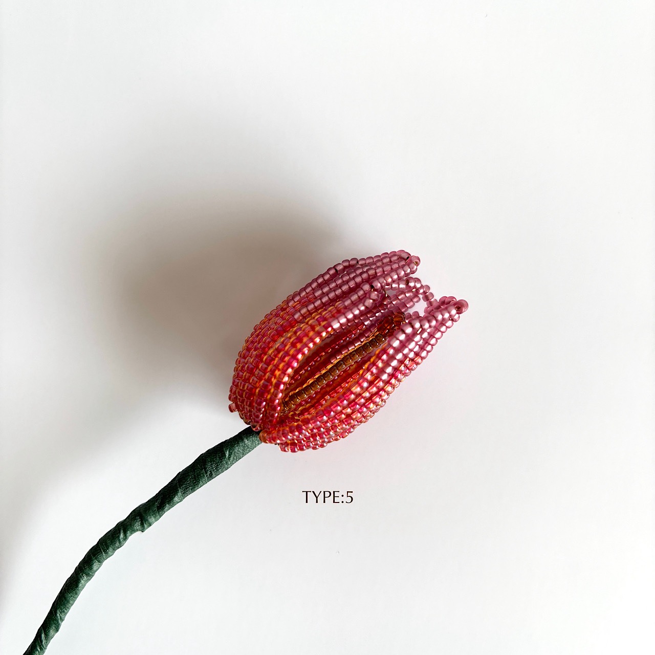 ころんとしたフォルムと、やわらかな色の重なりをビーズで一つひとつ丁寧に表現しました。